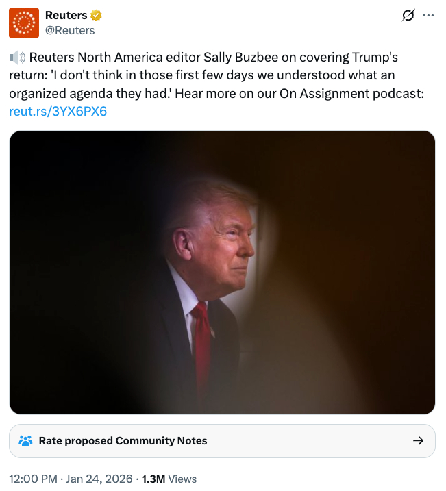 I don't think @reuters.com@bsky.brid.gy posted it here, but I'm just kind of shocked that anyone working in media could have gone into the second Trump administration thinking, "I don't think in those first few days we understood what an organized agenda they had." They made a 900-page playbook, Sally!