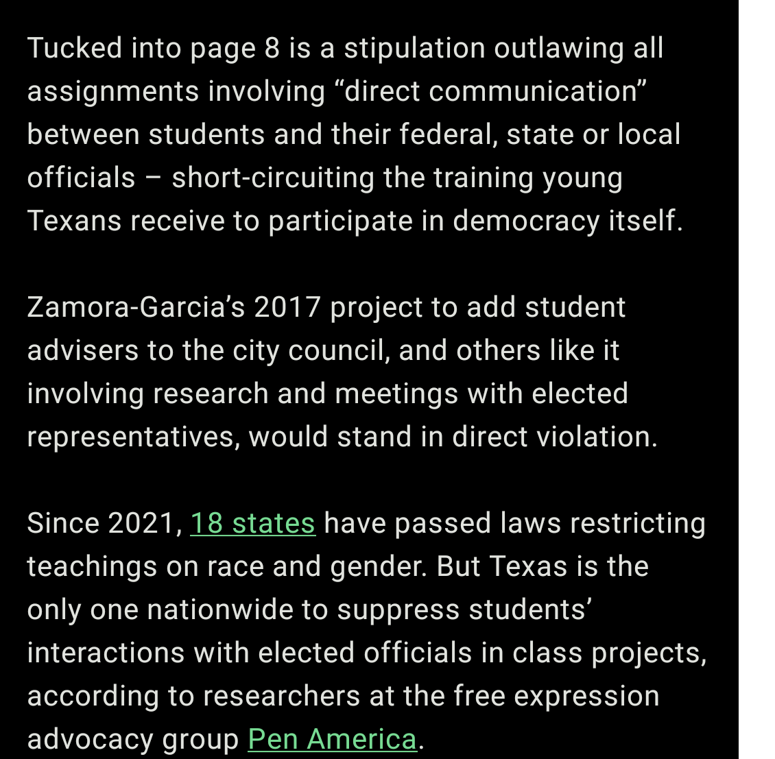 >Many states have restricted how schools can teach race and gender, but only Texas has banned student interaction with elected officials