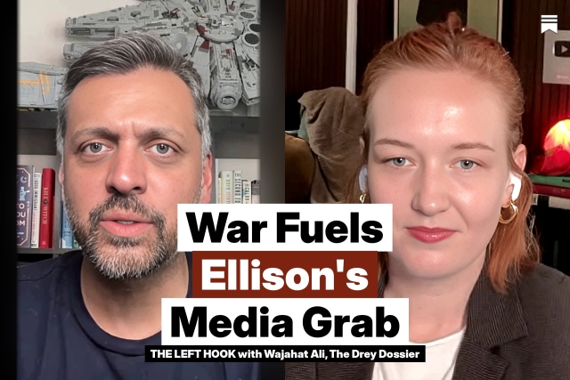 "While the Middle East burns and Americans pay more for food and gas, Trump and his billionaire friends, such as Larry Ellison, are profiting off of war, gobbling up our data, and going all-in on AI."