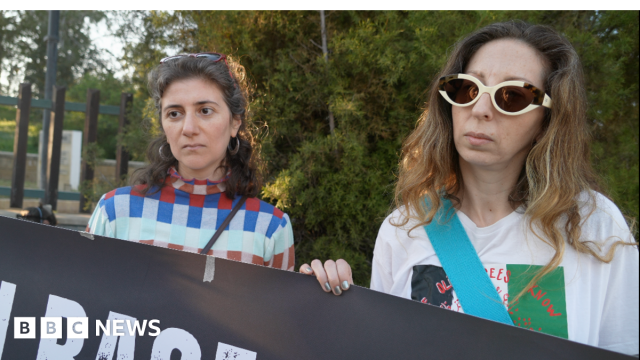 “British Bases Out” is the slogan of Cypriot protesters after a drone strike targeted the RAF Akrotiri airbase.Jessica Parker (BBC News)