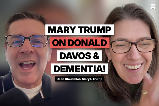 Stating that the title of his talk with Mary Trump is "Donald, Davos, and Dementia," Dean Obeidallah asks Mary to comment. She says,