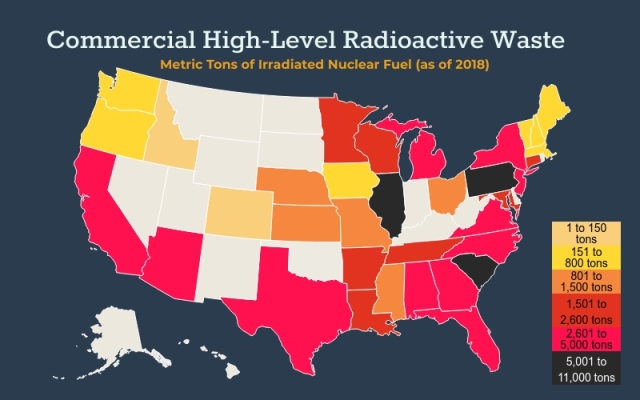 - Nearly one-third of the worldwide total of radioactive waste is in the United States.