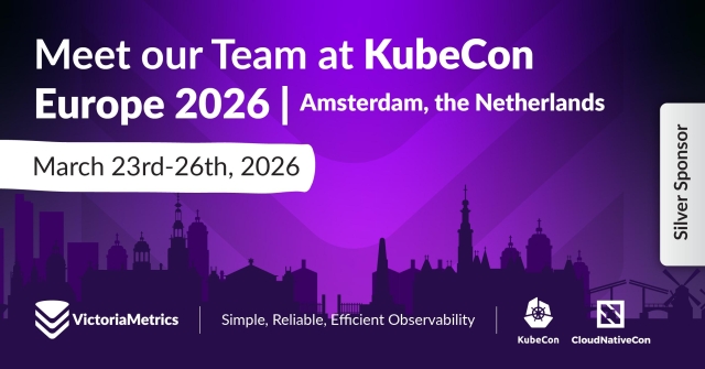 #VictoriaMetrics is a Silver Sponsor at #CNCF #KubeCon Europe 2026. Join us to explore the world of #observability, #monitoring including #logs, #traces & time series #databases for #Kubernetes users - and more. March 24-26 - booth #780. We will also be at the Observability Day on the 23rd - Table T34.