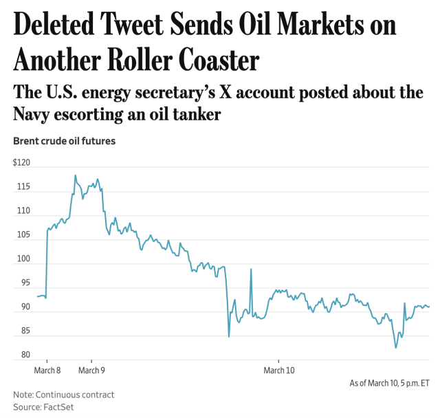 "In an 1100-word piece weighing the energy shock Trump’s illegal war on Iran has caused in terms of White House worries (and so implicitly, politics), Politico grants anonymity to someone describing what is happening to the oil market as 'little gyrations.' …