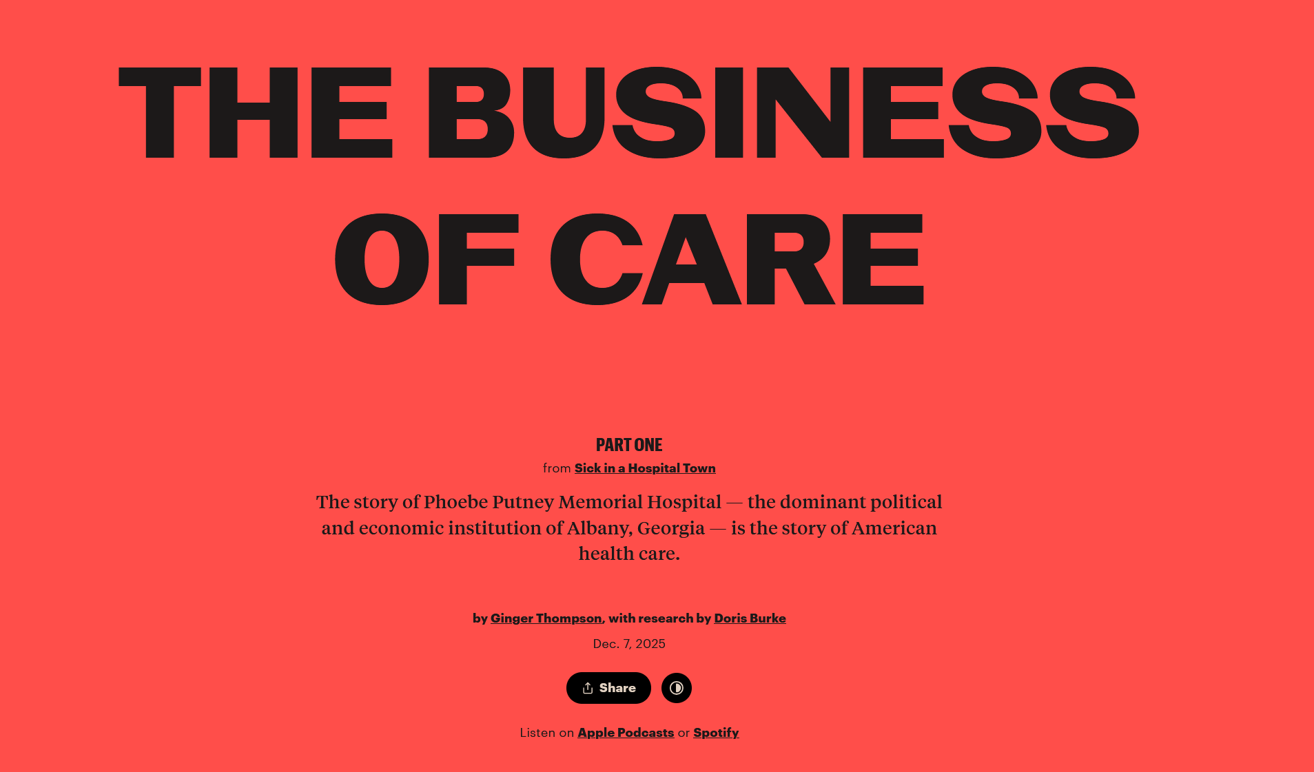 Welcome to Albany, Georgia, where one hospital dominates the political and economic landscape. The story of Phoebe Putney Memorial is the story of American health care.ProPublica